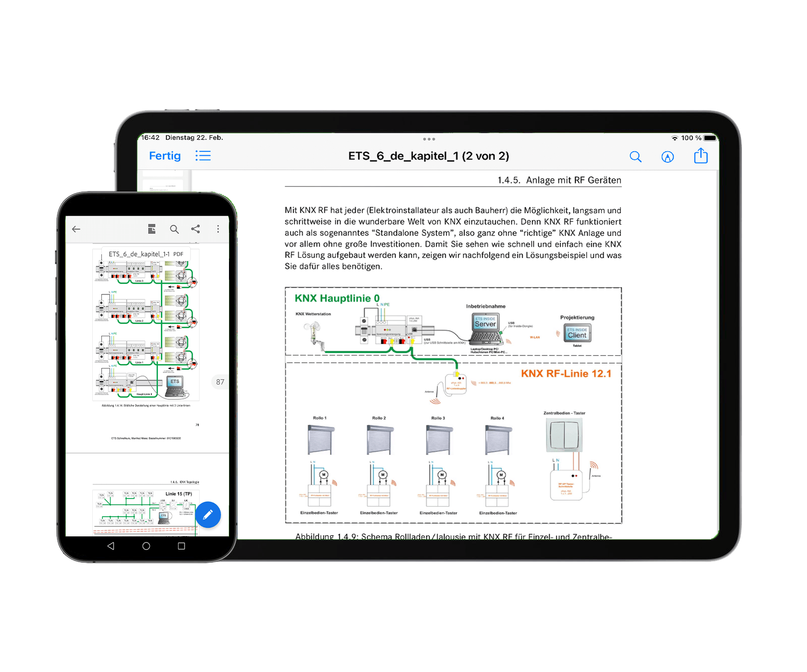 Neben zahlreichen Beigaben zum aktuellen ETS6 Schnellkurs (Pläne, Listen, Schemas, Lösungen...) sind auch alle PDF Kapitel vom ETS5 Schnellkurs gratis enthalten.