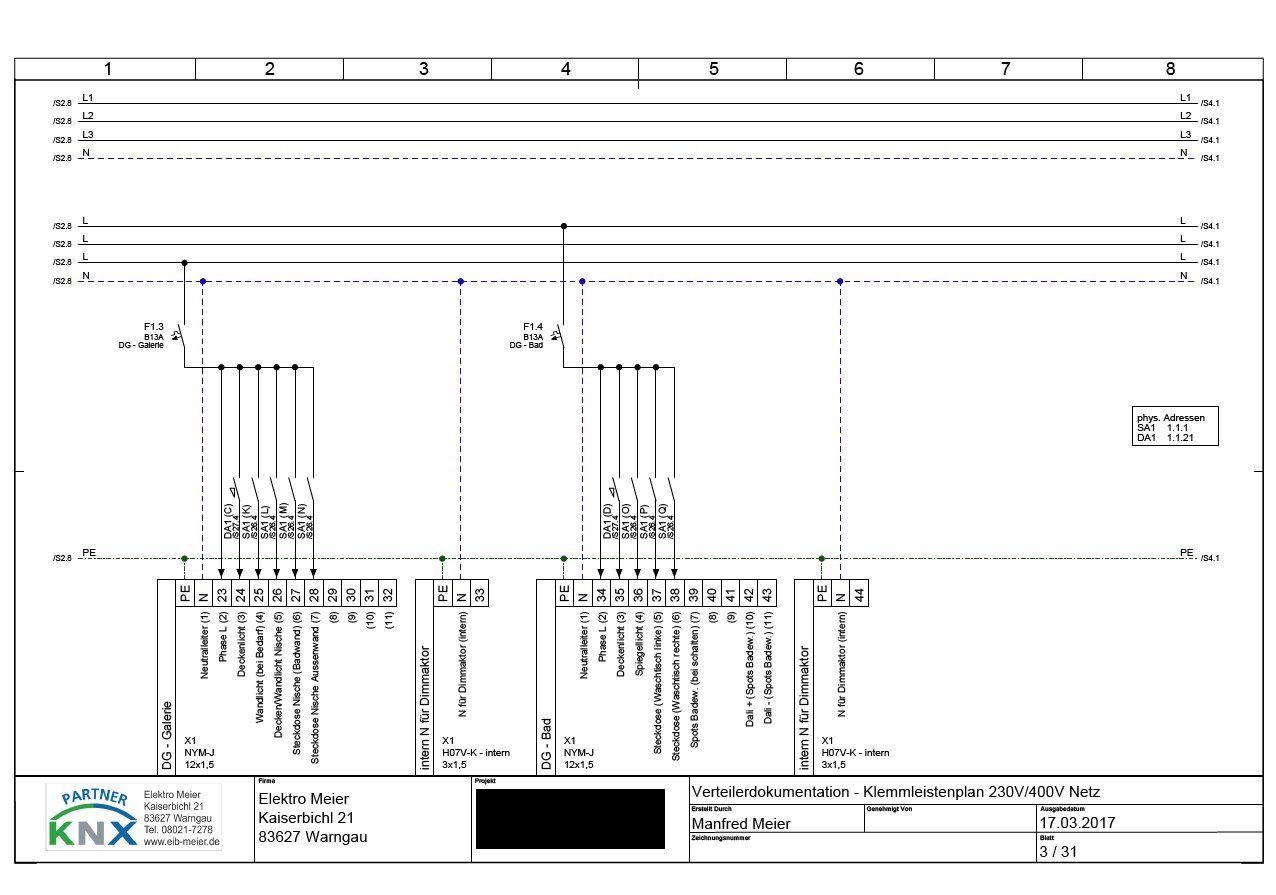 - Verteiler Stromlaufpläne mit KNX Aktorkanälen (Schaltpläne)
