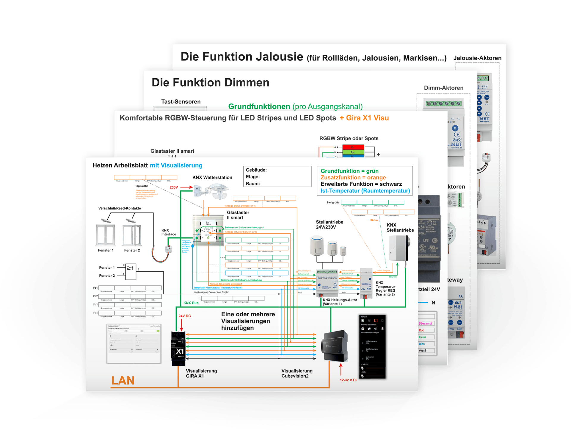 Neben zahlreichen Beigaben zum aktuellen ETS6 Schnellkurs (Pläne, Listen, Schemas, Lösungen...) sind auch alle PDF Kapitel vom ETS5 Schnellkurs gratis enthalten.
