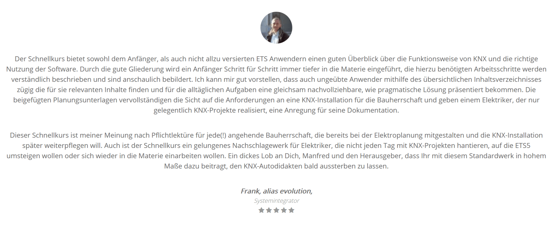 Wir haben den ETS Schnellkurs von Grund auf neu gedacht und damit ein einzigartiges Werk geschaffen, mit dem jeder KNX und die ETS ohne weitere Lektüre lernen kann.