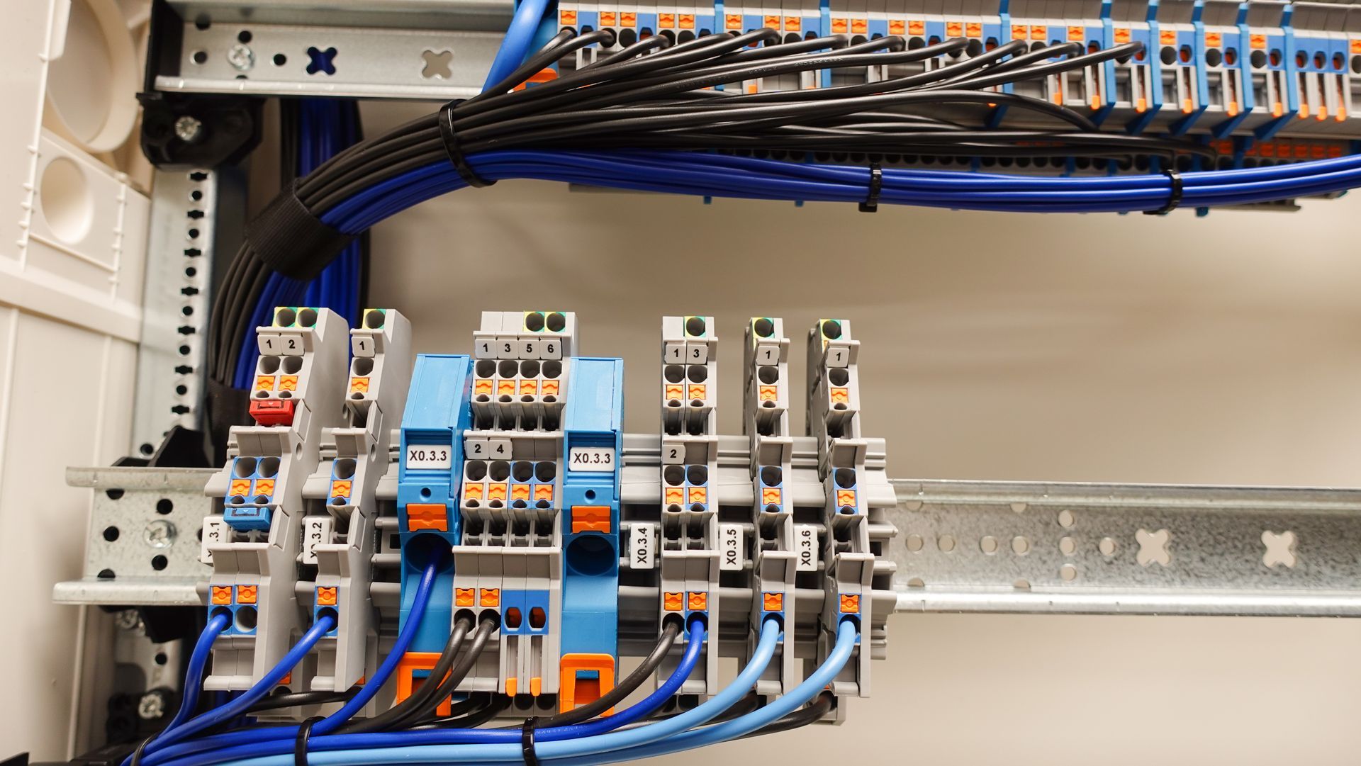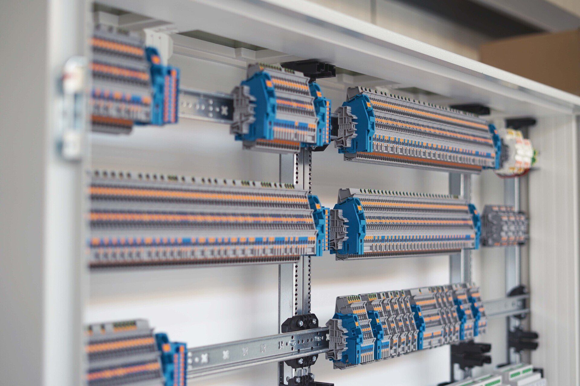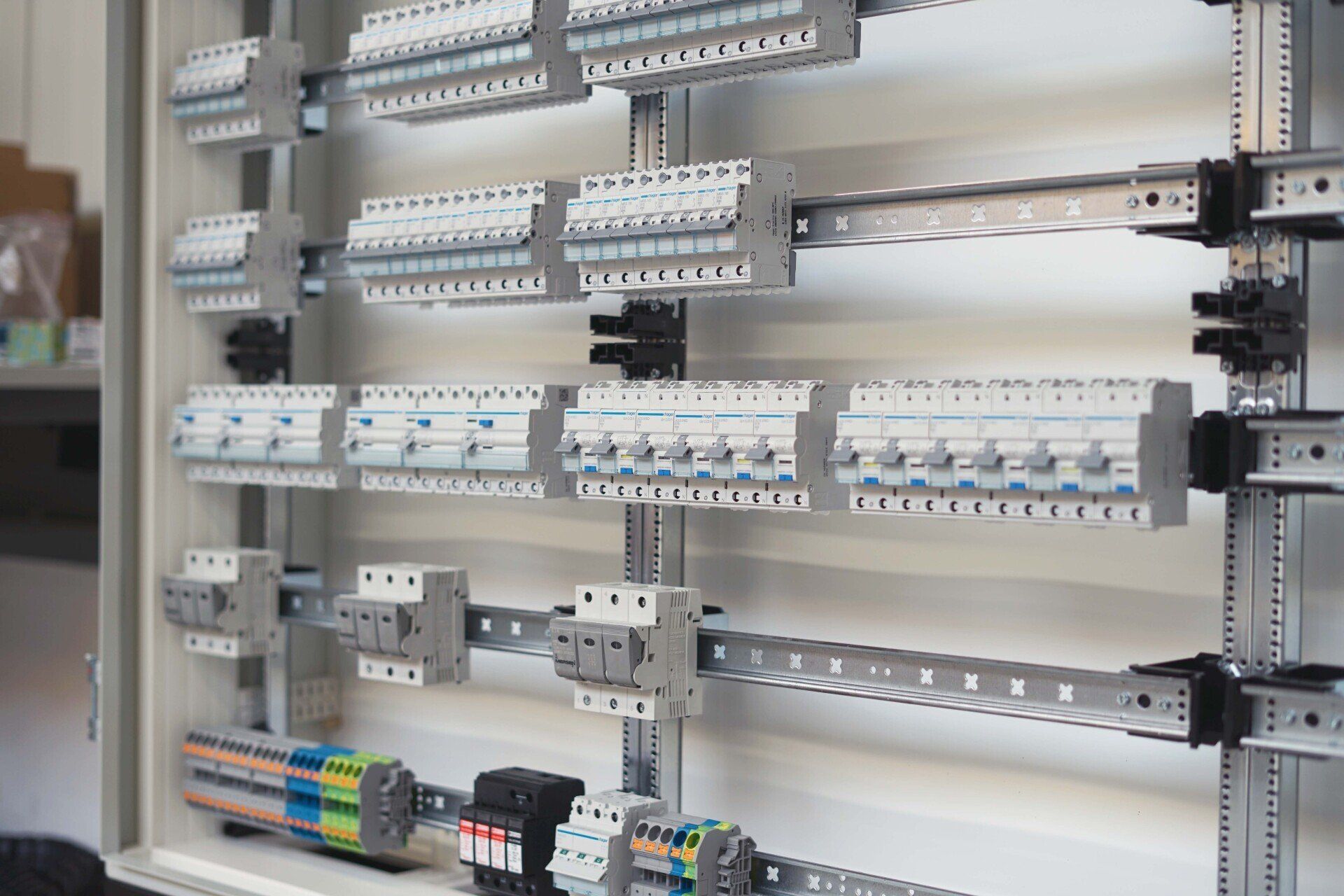 Ein KNX Schaltschrank ist ein Schaltschrank, welcher aus vielen hochwertigen KNX Geräten und Leitungsschutz-Geräten individuell zusammengestellt wird. Dieser sollte fachgerecht in einer geeigneten Montage-Werkstatt angefertigt werden (keinesfalls auf der staubigen Baustelle). Dafür ist auch ein gewisser Zeitrahmen, sowie die Verfügbarkeit aller Geräte und Kleinteile absolut notwendig.